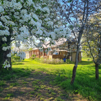 Outre l’activité agricole et la gestion des animaux, la ferme a un troisième axe d’activité agricole : nous replantons des arbres ou des haies boisées sur des parcelles qui en ont été totalement dénudées, cela afin de créer des zones de fraîcheur en cas de canicules, des zones d’habitats pour les oiseaux, des moyens de consolidation des terrains en cas de pluies diluviennes et de l’enrichissement des terrains. Nous sommes exactement au milieu de champs de grandes cultures, donc notre parcelle ressort comme un îlot de préservation de la biodiversité qui renaît.